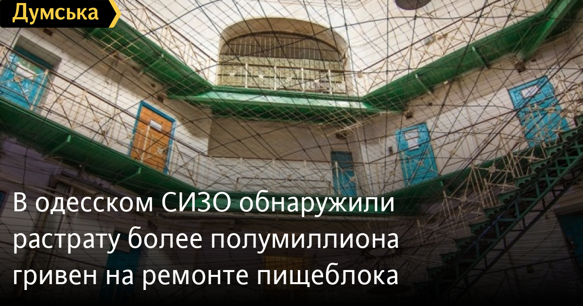Сотрудники сектора внутренней безопасности Департамента по вопросам исполнения уголовных наказаний во время ревизии обнаружили растрату руководством Одесского следственного изолятора денег, выделенных на выполнения ремонта пищеблока.