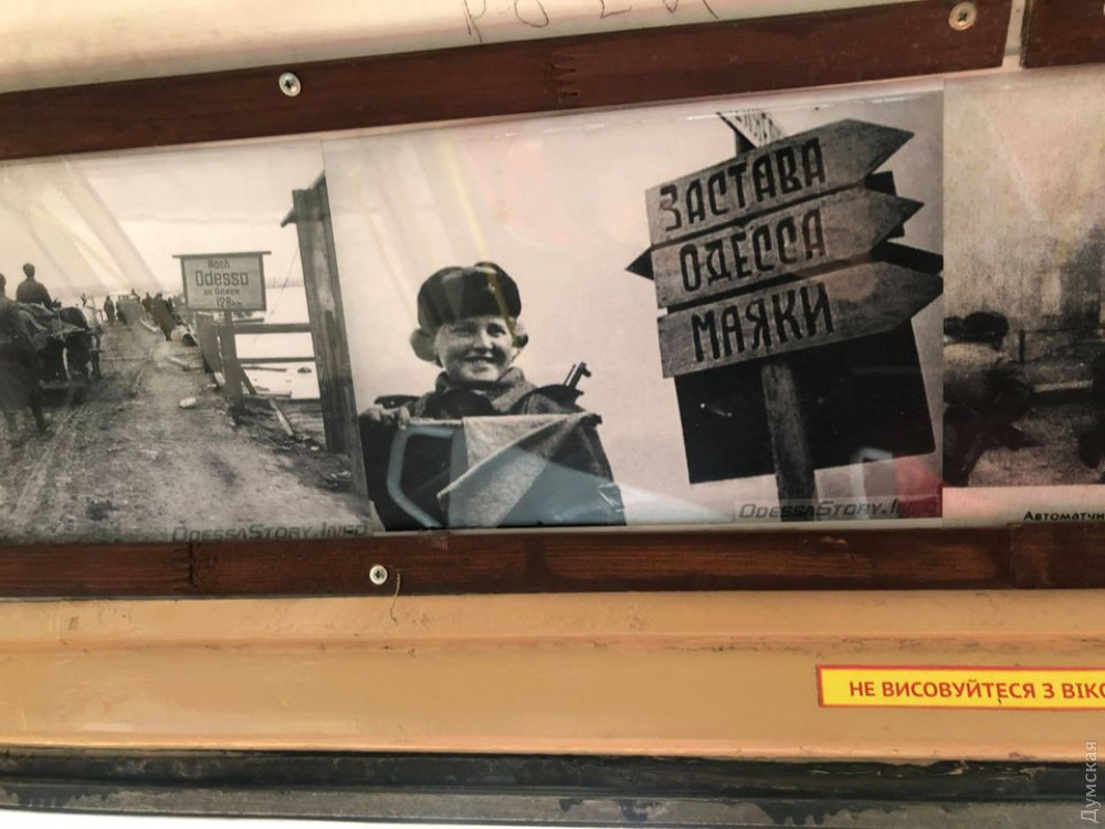 Пассажиры могут ознакомиться со снимками, зафиксировавшими бои на подступах к Одессе, кадры уже освобожденного города.