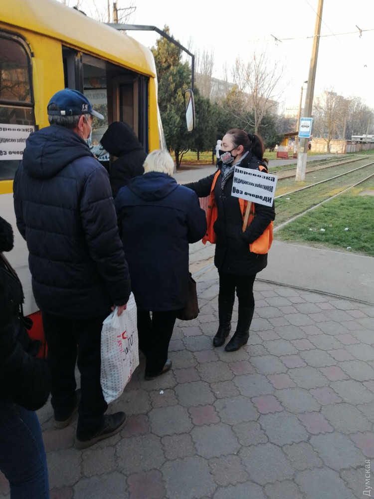 Поскольку не все медики знают о нововведении, на конечных и узловых остановках сотрудники КП «Одесгорэлектротранс» проводят разъяснительную работу и, если на остановке в этот момент находятся медики, приглашают их пройти в салон без очереди.