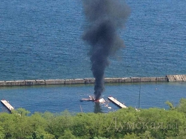 Как сообщают очевидцы, инцидент произошел днем 10 мая. Дым поднимался из яхт-клуба.
