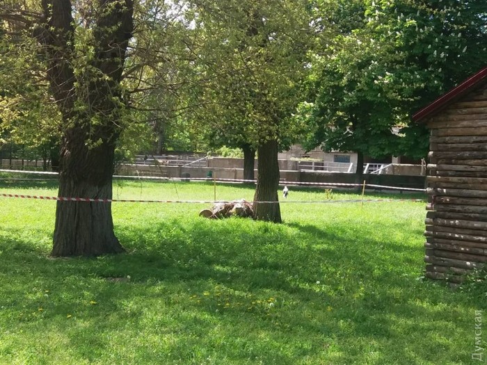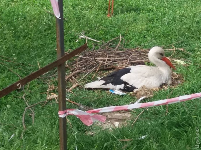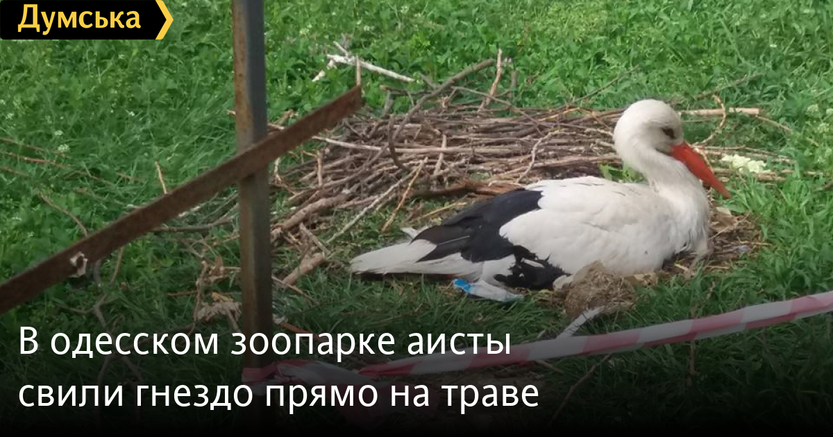 В зоопарке Одессы аисты свили гнездо прямо на траве.