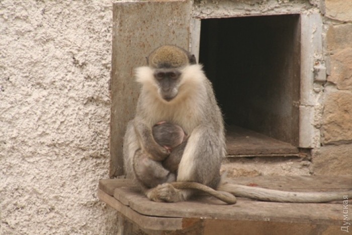 Так, в середине июня детеныш появился у зеленых мартышек. Он все время находится при заботливой маме и аккуратно знакомится с окружающим миром.