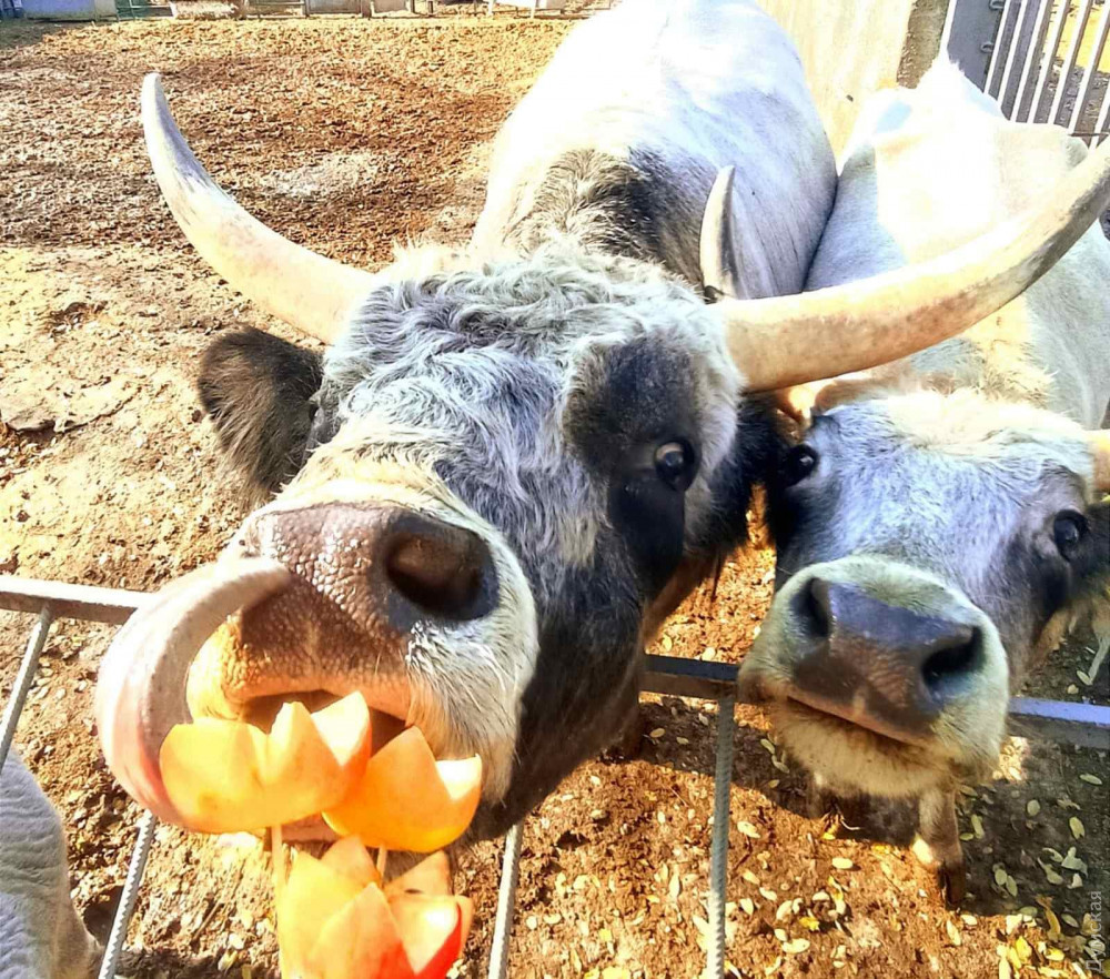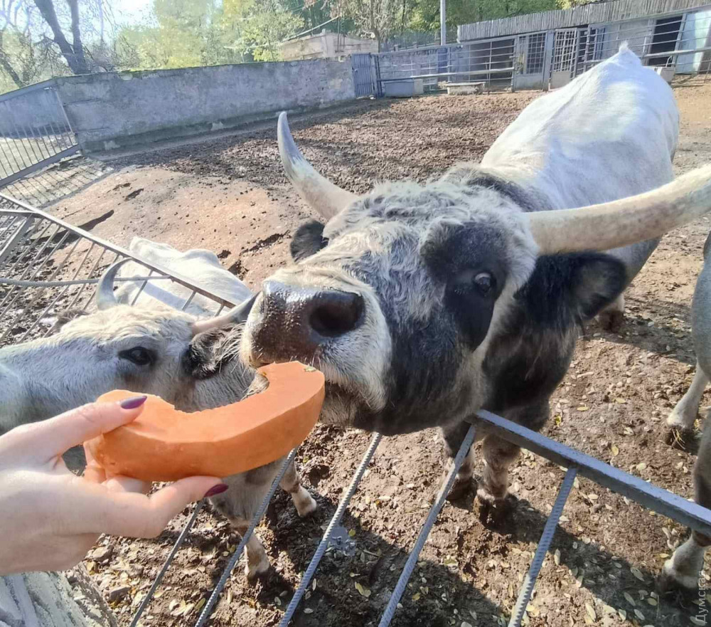 Сотрудники Одесского зоопарка отпраздновали пятилетие быка по кличке Нут из породы серый венгерский скот.