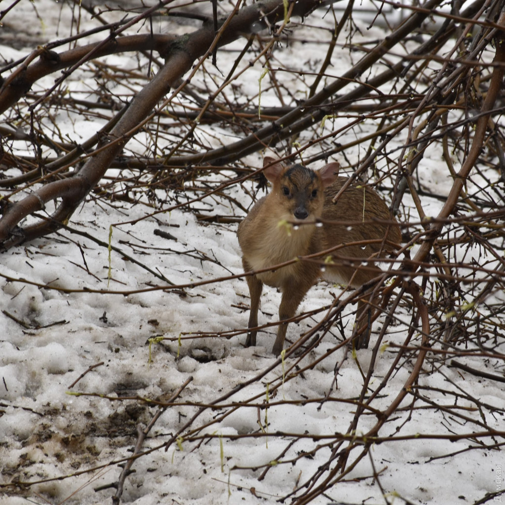На днях в одесском зоопарке произошло очередное пополнение. На свет появился олененок редкого вида — китайский мунтжак.