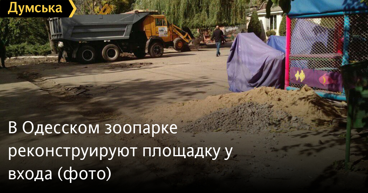 Тяжелая техника встречает сегодня посетителей Одесского зоопарка. Часть территории зверинца ограждена, рабочие демонтируют там асфальтное покрытие.