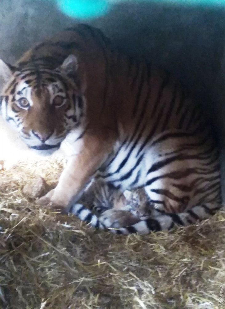 У пары амурских тигров, живущих в одесском зоопарке, родился детеныш.