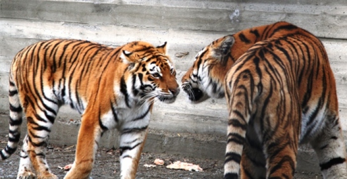 Как сообщает пресс-служба мэрии, Тайгер – старожил зоопарка, а Натали прибыла в наш город из ровненского зверинца. Сначала тигры обживались на новом месте и привыкали друг к другу на расстоянии – каждый находился в своем индивидуальном помещении. В общий вольер для выгула их выпускали по очереди.