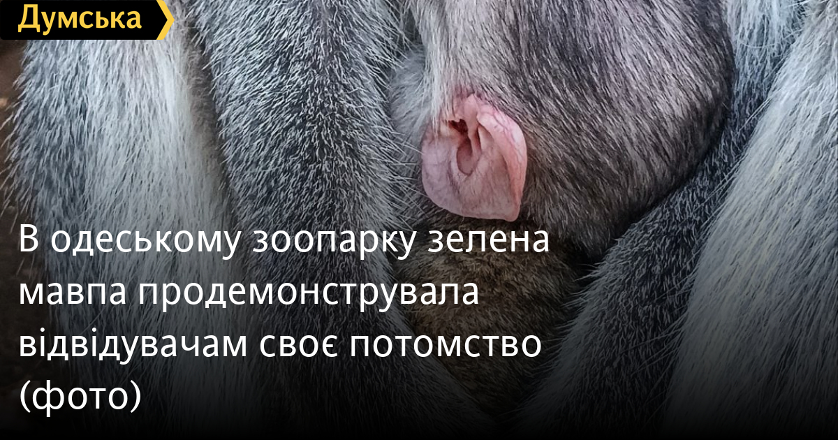 Зелена мавпа в одеському зоопарку вийшла у вольєр на загальний огляд зі своїм дитинчам, яке народилося місяць тому.