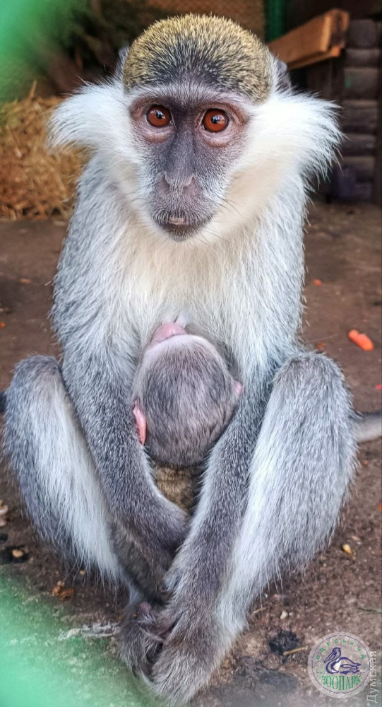 «Зелені мавпи народжують тільки одне дитинча. Зазвичай воно вкрите шерстю, а його очі відкриті. Одразу ж після того, як мати почистить новонародженого, він міцно хапається за шерсть на її животі. Перші тижні мати невпинно піклується про дитинча: чистить його шерсть, вилизує і регулярно поїть. Коли воно відходить занадто далеко або намагається вислизнути, мати притягує його за хвіст», — зазначили співробітники зоопарку.