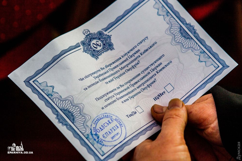 В нем приняло участие 413 клириков, собравшихся в Свято-Успенском патриаршем монастыре на Даче Ковалевского. Им предложили ответить на вопрос: «Поддерживаете ли вы сохранение существующего статуса Украинской православной церкви (Московского патриархата, — Ред.) и позицию ее предстоятеля, блаженнейшего митрополита Киевского и всея Украины Онуфрия?».