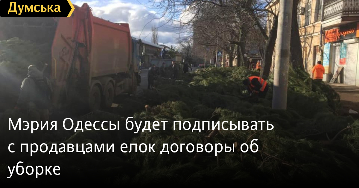 По его словам, 1 января нераспроданные елки остались на 68 стихийных рынках, и коммунальные службы целые сутки вывозили с улиц брошенные деревья. Дмитрий Жеман уверен, что если продавцы елок вместе с договором на аренду покрытия будут подписывать договоры на уборку территории, это упростит жизнь коммунальщикам. «Когда будут подписываться договоры на реализацию елок, вместе с договором на аренду покрытия должен быть составлен договор на уборку территории, чтобы мы знали еще до Нового года какое количество рынков будет, сколько елок может остаться, какой ресурс нам необходимо задействовать. Самое главное: мы будем к этому готовы как технически, так и финансово», — утверждает Жеман. Чиновник добавил, что на прошлой неделе к уборке брошенных елок в Одессе привлекли более 500 коммунальщиков, 29 единиц техники, которые осуществили 140 рейсов. Читайте также: Где в Одессе за ненужную елку можно получить конфеты