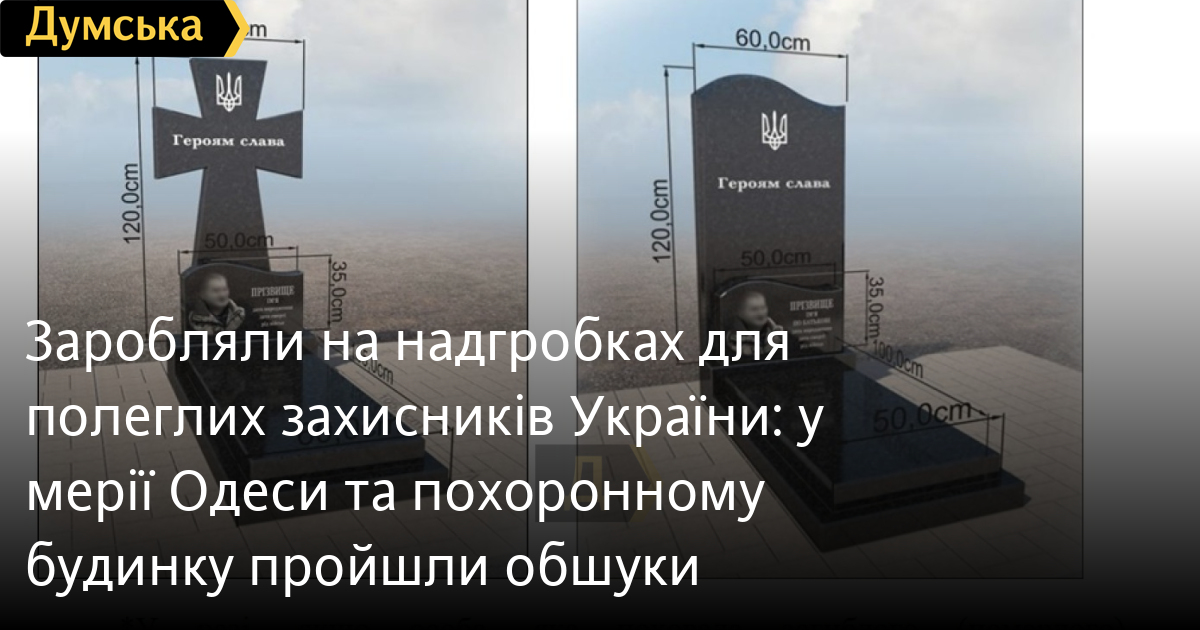 Низку обшуків провели поліцейські в структурних підрозділах мерії Одеси, на міському комунальному підприємстві та у приватної фірми в рамках справи про закупівлю надгробних пам'ятників для полеглих українських воїнів.