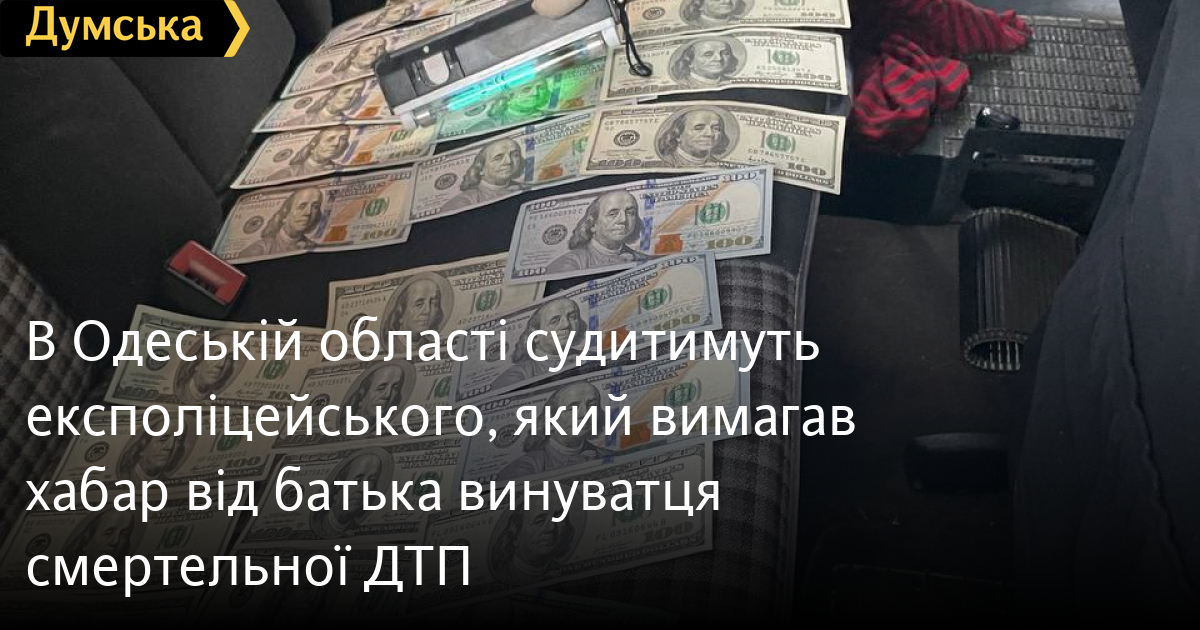 В Одеській області судитимуть експоліцейського, який вимагав хабар від батька винуватця смертельної ДТПСлідство скерувало до суду обвинувальний акт стосовно колишнього начальника одного з відділень поліції в Одеській області, затриманого в жовтні 2022 року під час одержання хабара в розмірі 5000 доларів. У прокуратурі повідомили, що фігурант вимагав і отримав гроші від батька винуватця смертельної ДТП. Він обіцяв «узгодити» із суддею для нього мінімальний термін або навіть виправдувальний вирок. В іншому разі він погрожував, що підсудний отримає максимальне покарання. Після затримання хабарника звільнили з МВС. Незабаром він постане перед судом за ст.369-2 Кримінального кодексу України (зловживання впливом). Помітили помилку? Виділяйте слова з помилкою та натискайте control-enter Новини по цій темі: 15 липня 2025: Вимагала 400 євро за підробку документів для пенсії: в Одеській області чиновниця попалася на хабарі (фото, відео) 27 червня 2025: За 40 тис. грн хотів купити секретні розробки: в Одесі затримали співробітника приватної фірми 6 червня 2025: Вимагав три тисячі доларів за довідку про інвалідність: в Одесі затримали головлікаря лікарні (фото) 8 травня 2025: Обіцяли оформити програмістом в комунальне підприємство: в Одеській області викрили схему ухилення від армії |