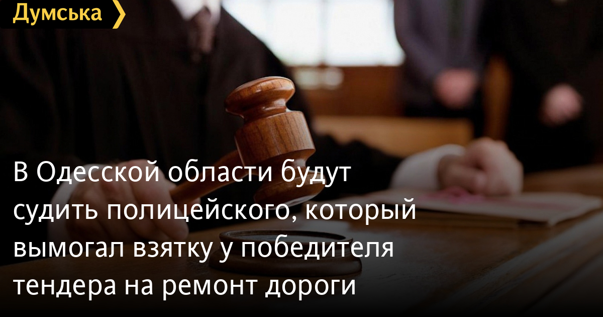В Одесской области будут судить полицейского, который вымогал взятку у победителя тендера на ремонт дорогиСледствие направило в суд обвинительный акт в отношении начальника сектора дознания одного из райотделов полиции в Одесской области, которого задержали в мае при получении взятки в 42 тысячи гривен. Как сообщили в прокуратуре, полицейский вымогал 1,5 тысячи долларов у руководителя фирмы, которая в 2020 году выиграла тендер на ремонт дороги в одном из сел Березовского района (на территории бывшего Ширяевского района). Подрядчик, якобы, растратил бюджетные средства и не отремонтировал дорогу, полицейский за взятку обещал не открывать по этому факту уголовное производство. Полицейскому инкриминируют совершение уголовного преступления, предусмотренного ч.3 ст.368 УК Украины (получение неправомерной выгоды должностным лицом) СМЕРТЬ РОССИЙСКИМ ОККУПАНТАМ! Заметили ошибку? Выделяйте слова с ошибкой и нажимайте control-enter |