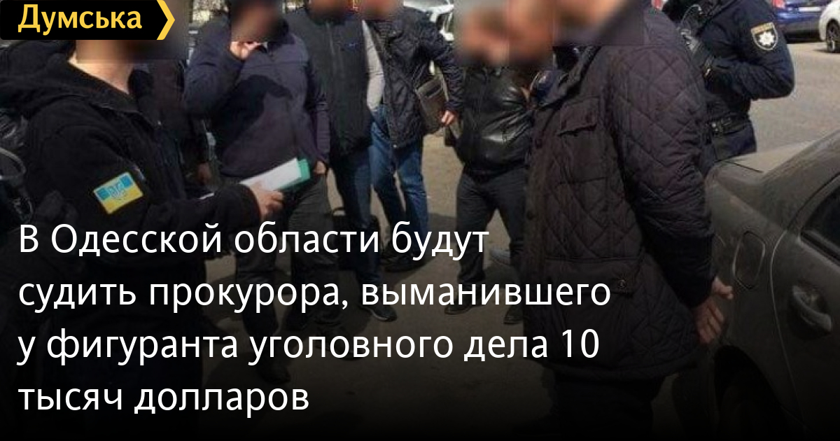 В Одесской области будут судить прокурора, выманившего у фигуранта уголовного дела 10 тысяч долларовСледователи прокуратуры Одесской области завершили досудебное расследование в отношении сотрудника местной прокуратуры и его сообщника, которых обвиняют в мошенничестве и подстрекательстве к предоставлению неправомерной выгоды должностному лицу. Как сообщили в пресс-службе надзорного ведомства, обвинительный акт в отношении указанных лиц передан в суд. Прокурор отстранен от занимаемой должности. Следствие установило, что сотрудник местной прокуратуры предложил «вытащить» из СИЗО фигуранта преступной схемы, то есть добиться смены меры пресечения на не связанную с содержанием под стражей. Для этого на воле знакомый задержанного должен был найти 10 тысяч долларов и передать их прокурору. Сотрудник прокуратуры действовал заведомо незаконно, он мошенническим путем выманил деньги, но при этом не имел возможностей и намерения повлиять на смену меры пресечения подозреваемому. Открыто уголовное дело по ч. 3 ст. 190, ч. 4 ст. 27, ч. 2 ст. 15 ч. 3 ст. 369 УК Украины.