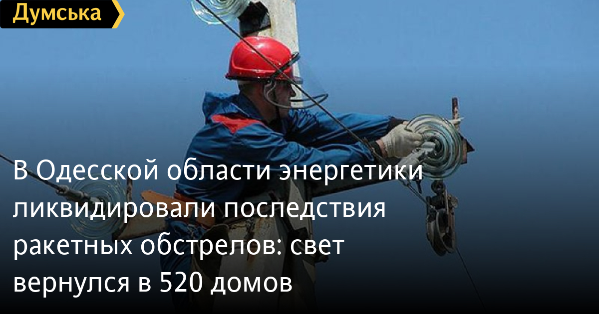 Одесские энергетики ликвидировали последствия ракетных обстрелов области — 520 семей снова со светом.