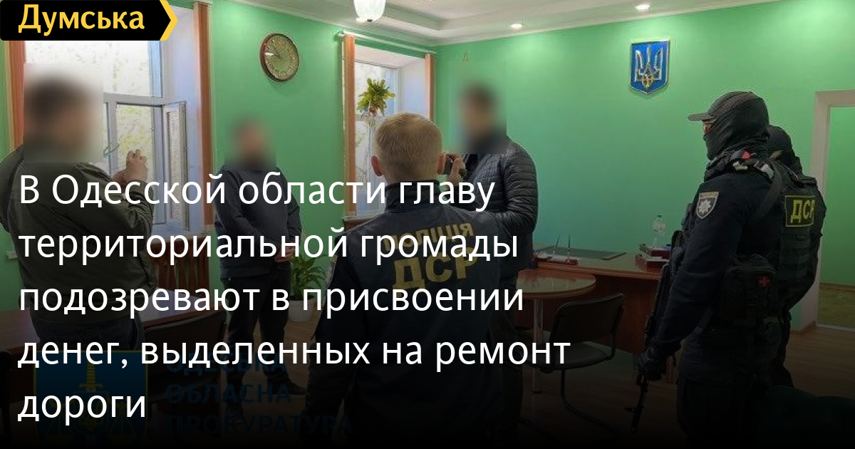 Правоохранители объявили подозрение в совершении преступления, предусмотренного ч.3 ст.191 и ч.1 ст.366 Уголовного кодекса Украины (присвоение, растрата имущества путем злоупотребления служебным положением, служебный подлог) главе одной из объединенных территориальных громад Одесской области.
