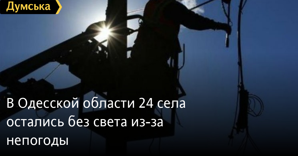 Из-за сложных погодных условий в воскресенье в Одесской области обесточены 24 населенных пункта. Об этом сообщила пресс-служба Госслужбы по чрезвычайным ситуациям. Ремонтные бригады «Одессаоблэнерго» восстанавливают электроснабжение. Всего без света остались 537 населенных пунктов в 14 областях. Больше всего — в Черниговской (150) и Киевской (114). СМЕРТЬ РОССИЙСКИМ ОККУПАНТАМ! Заметили ошибку? Выделяйте слова с ошибкой и нажимайте control-enter |