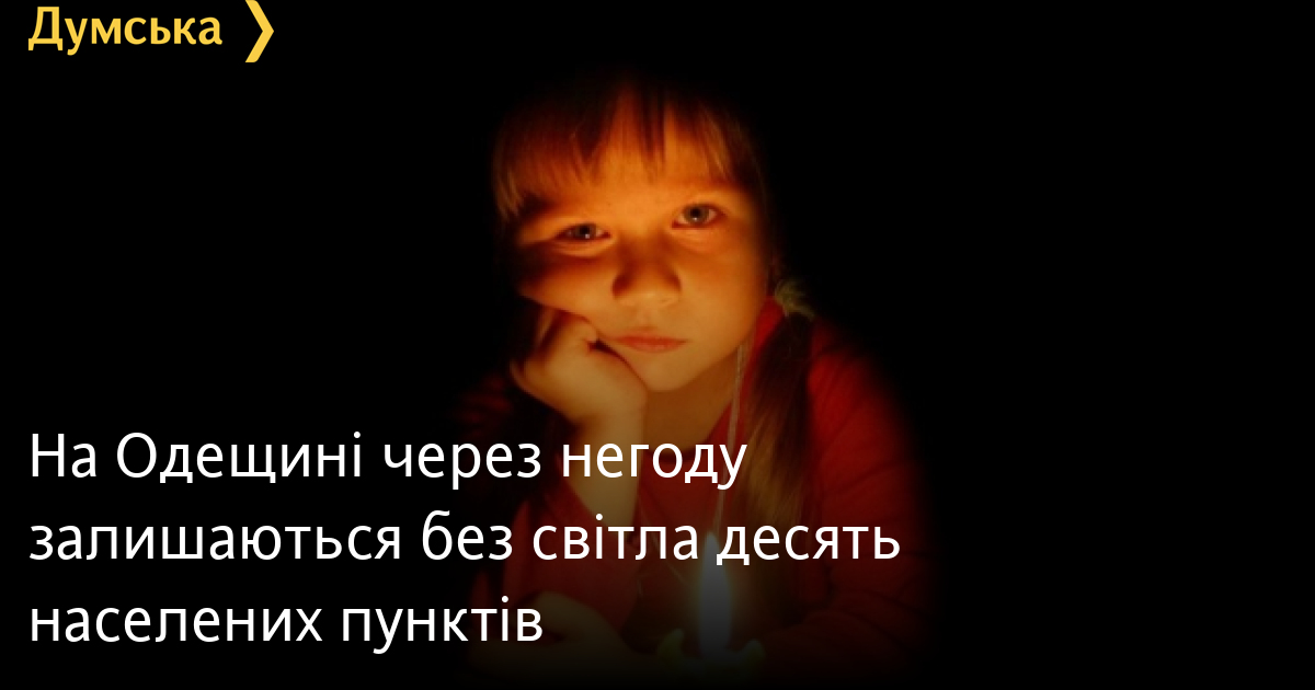 Десять населених пунктів залишаються без світла на Одещині після нічної негоди.