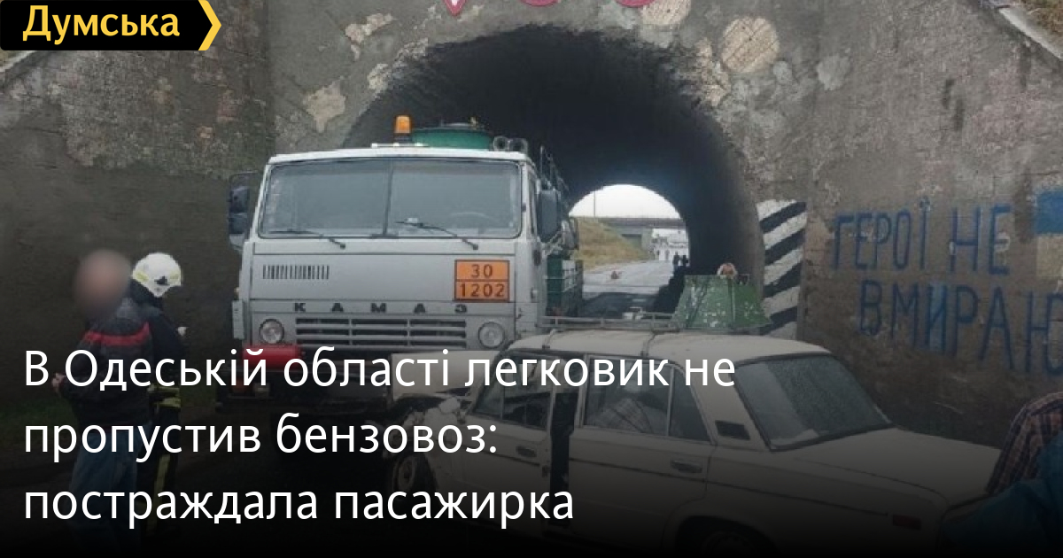 В Одеській області легковик не пропустив бензовоз: постраждала пасажиркаАварія за участю бензовоза КамАЗ сталася 8 серпня в Одеській області. На дорозі між селами Кучурган і Павлівка 63-річний водій легкового автомобіля ВАЗ не надав бензовозу перевагу в русі, повідомили в поліції Одеської області. Унаслідок зіткнення 62-річну пасажирку ВАЗу доправили до лікарні з переломом грудної клітки. Обставини ДТП встановлюють правоохоронці. Помітили помилку? Виділяйте слова з помилкою та натискайте control-enter Новини по цій темі: 30 серпня 2025: Машина вилетіла в кювет: мер Рені потрапив в аварію, його мати загинула, а маленький син у лікарні (фото) 18 серпня 2025: Троє загинули, один у лікарні: на трасі Одеса-Рені водій Mercedes не пропустив фуру (фото) 28 липня 2025: П'яний на "Ягуарі" або гіпертонік? Звільнений топ-посадовець одеської поліції хоче повернутися на службу 2 квітня 2025: В Одесі водій BMW спровокував аварію, в якій постраждали п`ятеро людей, і втік (фото, відео) |
