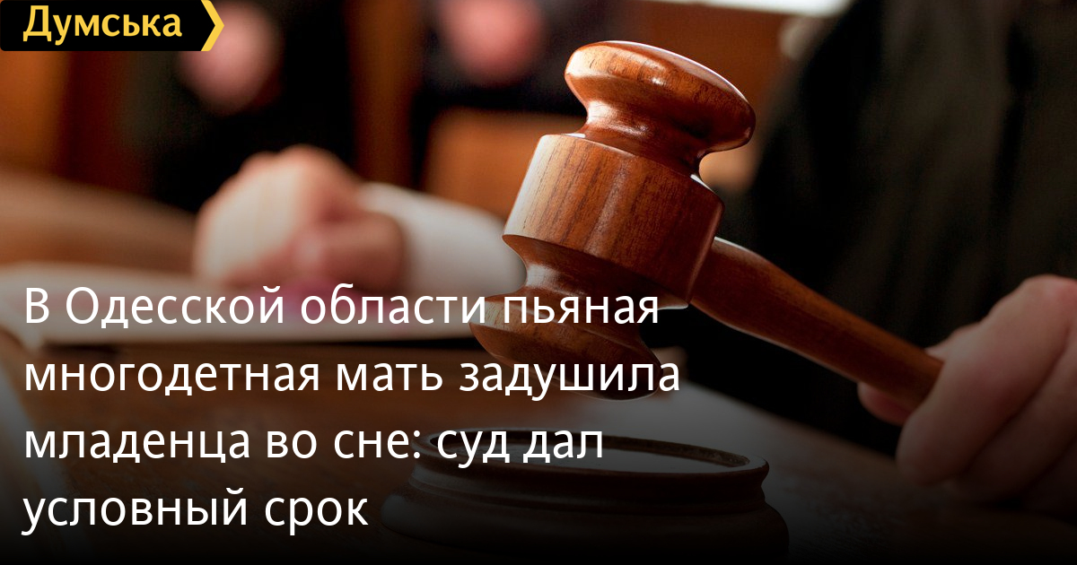 В Одесской области пьяная многодетная мать задушила младенца во сне: суд дал условный срокМать новорожденной девочки, которая случайно придушила ее во сне, получила условный срок. Как следует из приговора, Раздельнянский райсуд признал женщину виновной в убийстве по неосторожности, и нашел достаточно смягчающих обстоятельств, чтобы оставить ее на свободе. При этом было установлено, что мать выпивала в день трагедии. Она произошла ночью 14 марта прошлого года, когда обвиняемая находилась в доме своей матери, где они вместе употребляли алкоголь. Около шести утра, будучи пьяной, женщина легла спать на диване рядом с младенцем. Во сне мать придавила ребенка, перекрыв дыхательные пути. Девочка умерла от механической асфиксии. Примечательно, что суд хоть и признал алкогольное опьянение отягчающим обстоятельством, смягчающие оказались по его мнению существеннее: полное признание вины, искреннее раскаяние, отсутствие судимостей, сложные социальные условия, положительные характеристики и наличие у женщины еще четырех малолетних детей. Суд назначил обвиняемой пять лет лишения свободы, но освободил ее от отбывания наказания с испытательным сроком на три года. Если в этот период женщина не совершит нового преступления, реальный срок ей отбывать не придется. Известно, что многодетная мать трудится соцработником в КУ «Центр предоставления социальных услуг» Великомихайловского поселкового совета. СМЕРТЬ РОССИЙСКИМ ОККУПАНТАМ! Заметили ошибку? Выделяйте слова с ошибкой и нажимайте control-enter |