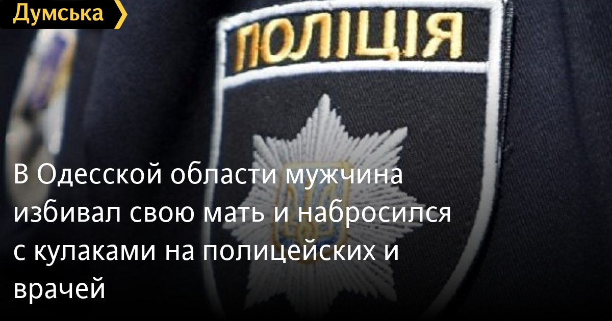 В Одесской области мужчина избивал свою мать и набросился с кулаками на полицейских и врачейПолиция объявила подозрение в хулиганстве и насилии в отношении сотрудника правоохранительного органа 26-летнему жителю Березовского района, который пьяным избивал свою мать, а затем набросился на правоохранителей и врачей. В ГУНП сообщили, что полицию вызвала 51-летняя мать пьяного дебошира, которая сообщила, что он затеял с ней драку. Когда на место инцидента прибыл наряд, хулиган напал на полицейских. Мужчину удалось угомонить и отвезти в районную больницу для сдачи анализа на алкогольное опьянение. Но фигурант не успокоился и набросился на врача, а когда полицейский попытался ему помешать – толкнул его. Правоохранитель упал и получил травму ноги. В результате, по ч.1 ст.296, ч.2 ст.345 УК Украины задержанному грозит до 5 лет тюрьмы. СМЕРТЬ РОССИЙСКИМ ОККУПАНТАМ! Заметили ошибку? Выделяйте слова с ошибкой и нажимайте control-enter Новости по этой теме: 4 августа 2025: Экспертизу не сделали, камеры не отсмотрели: одесские волонтеры жалуются на саботаж полиции в расследовании убийства собаки 29 июля 2025: В Усатово Одесской области произошла перестрелка: полиция работает на месте (видео, обновлено) 28 июля 2025: Пьяный на «Ягуаре» или гипертоник? Уволенный топ-чиновник одесской полиции хочет вернуться на службу 19 июня 2025: Девочку, которую искали сотни одесситов, нашли убитой: полиция работает с мужчиной, вероятно, причастным к гибели |