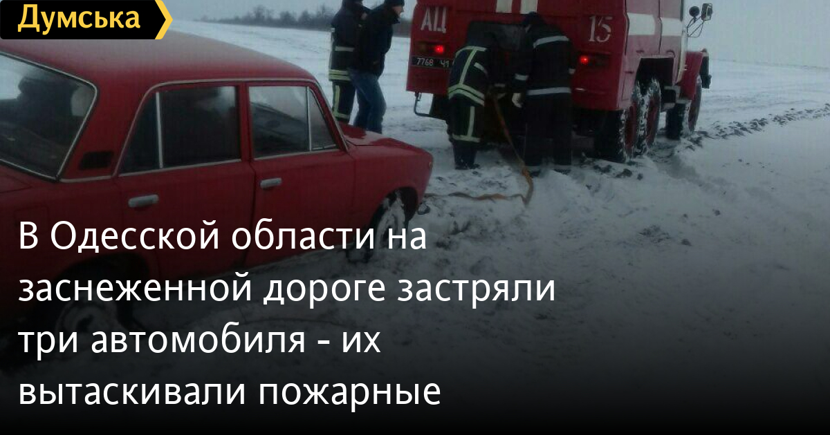 В Одесской области на заснеженной дороге застряли три автомобиля — их вытаскивали пожарные