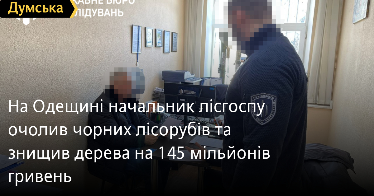 На Одещині начальник лісгоспу очолив «чорних лісорубів» та знищив дерева на 145 мільйонів гривеньНачальник філії держпідприємства «Ліси України» в Одеській області курирував незаконне знищення на довіреній йому території понад півтори тисячі дубів, ясенів та акацій. У Держбюро розслідувань повідомили, що у 2022-2023 році таким чином чиновник завдав державі збитків на понад 145 мільйонів гривень. За даними слідства, фігурант незаконно видавав квитки на знесення дерев своїм підлеглим, які пилили здорові рослини під виглядом санітарного очищення лісу. Дії фігуранта кваліфікували за 365 статтею Кримінального кодексу України (перевищення службових повноважень). Йому світить десять років у в'язниці. Помітили помилку? Виділяйте слова з помилкою та натискайте control-enter |