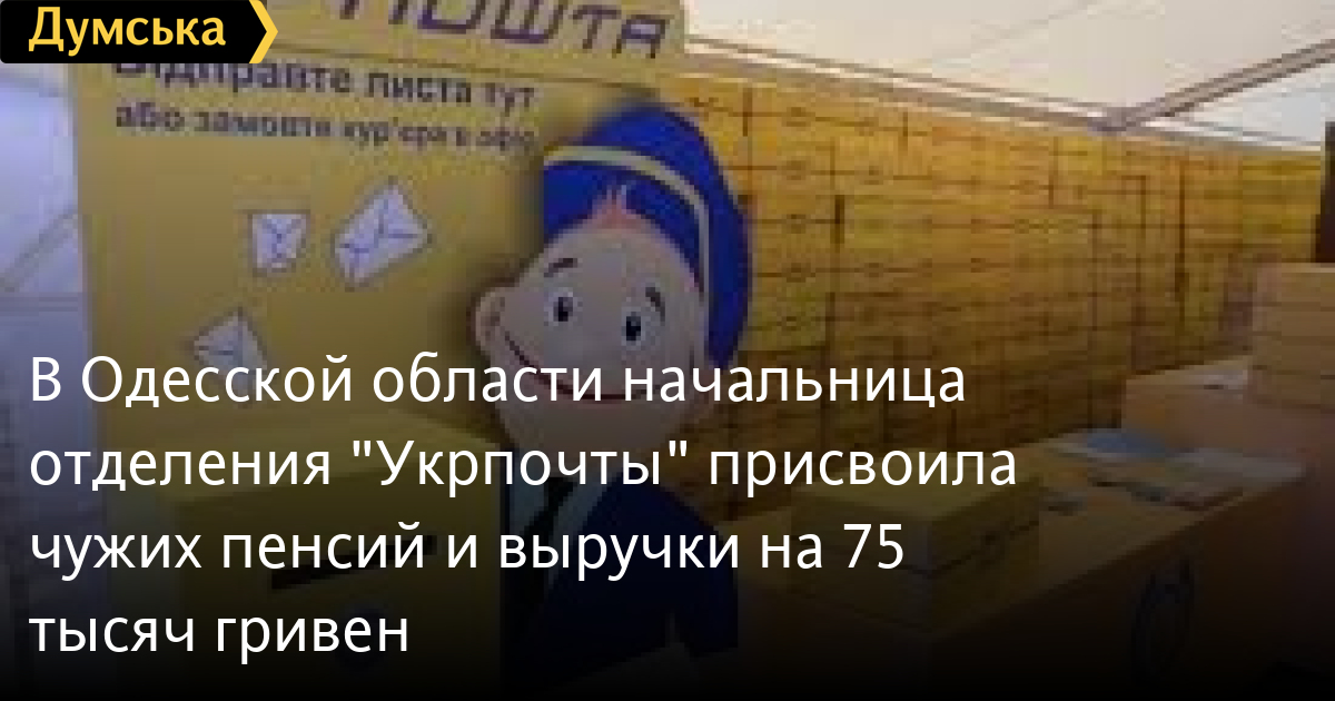 В Одесской области начальница отделения «Укрпочты» присвоила чужих пенсий и выручки на 75 тысяч гривен
