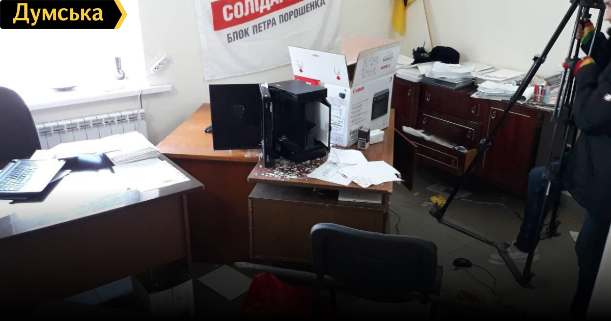 В Одесской области неизвестные устроили погром в приемной партии Порошенко (обновлено)Неизвестные совершили нападение на приемную Блока Петра Порошенко «Солидарность» в Окнах Одесской области. Инцидент произошел ночью, когда в офисе никого не было, сообщили «Думской» в областной организации БПП. «Они взломали дверь и разбили компьютеры и другую технику. Сейчас там работает полиция, никого не пускают», — рассказал представитель политической силы. ОБНОВЛЕНО В 12:49. Полиция открыла по факту случившегося уголовное производство. Действия неизвестных предварительно квалифицировали по части 1 ст. 194 УК Украины — «умышленное уничтожение или повреждение имущества». СМЕРТЬ РОСІЙСЬКИМ ОКУПАНТАМ! Помітили помилку? Виділяйте слова з помилкою та натискайте control-enter