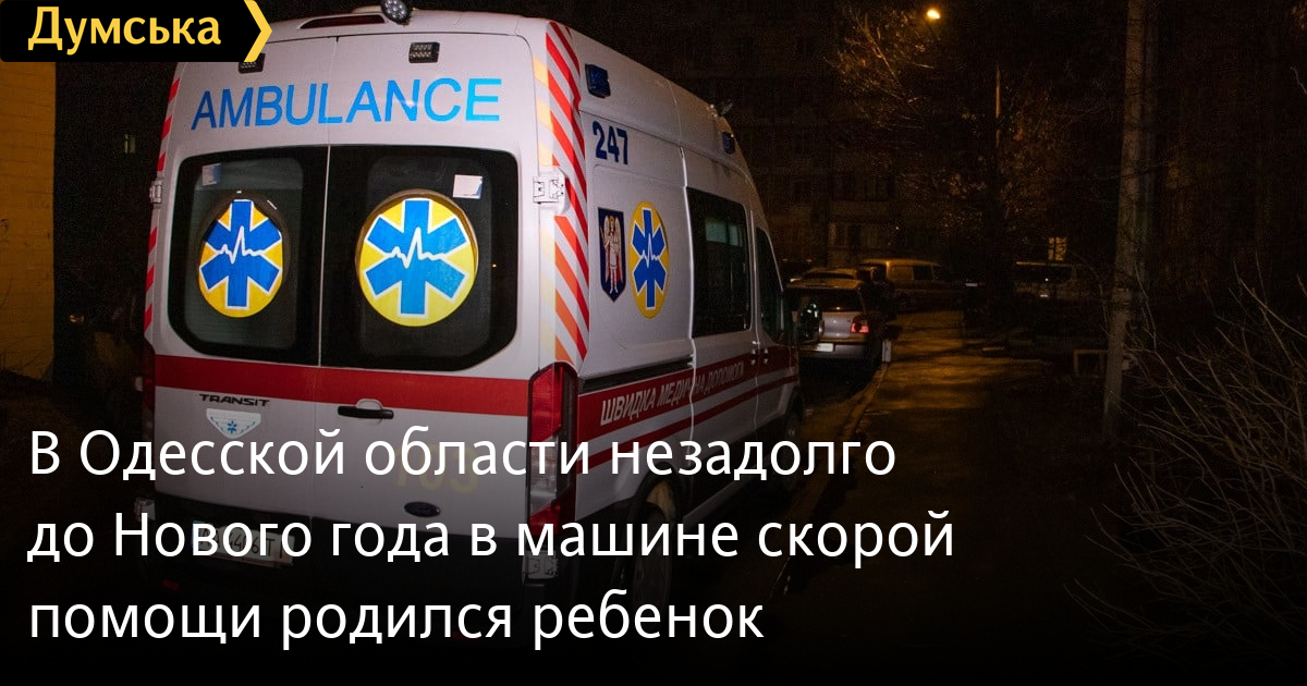 В Одеській області незадовго до Нового року в машині швидкої допомоги народилася дитинаМедики швидкої допомоги в новорічну ніч дорогою до лікарні прийняли пологи в мешканки села Андрієво-Іванівка в Березівському районі Одеської області. В обласному Центрі екстреної медичної допомоги та медицини катастроф заявили, що дитина з'явилася на світ за кілька годин до настання Нового року. Стан породіллі та немовляти добрий. Медики кваліфіковано прийняли пологи, після чого доправили породіллю і нового пацієнта в пологове відділення. Помітили помилку? Виділяйте слова з помилкою та натискайте control-enter |