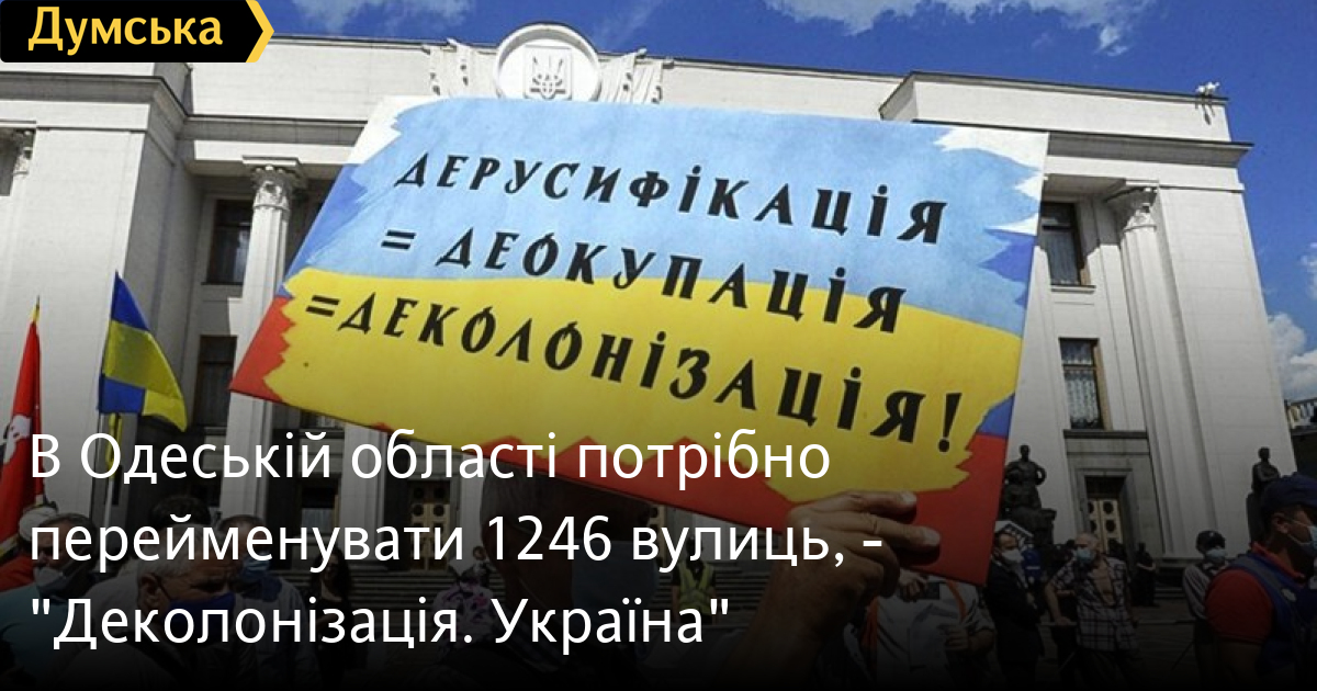 1246 вулиць із російськими або радянськими назвами необхідно перейменувати в Одеській області, щоб виконати вимоги декомунізаційного та деколонізаційного законодавства.