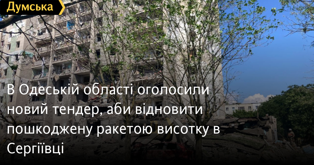 Новий конкурс на капітальний ремонт дев'ятиповерхівки в Сергіївці, ракетна атака на яку забрала життя 21 людини, оголосила Служба відновлення та розвитку інфраструктури в Одеській області.