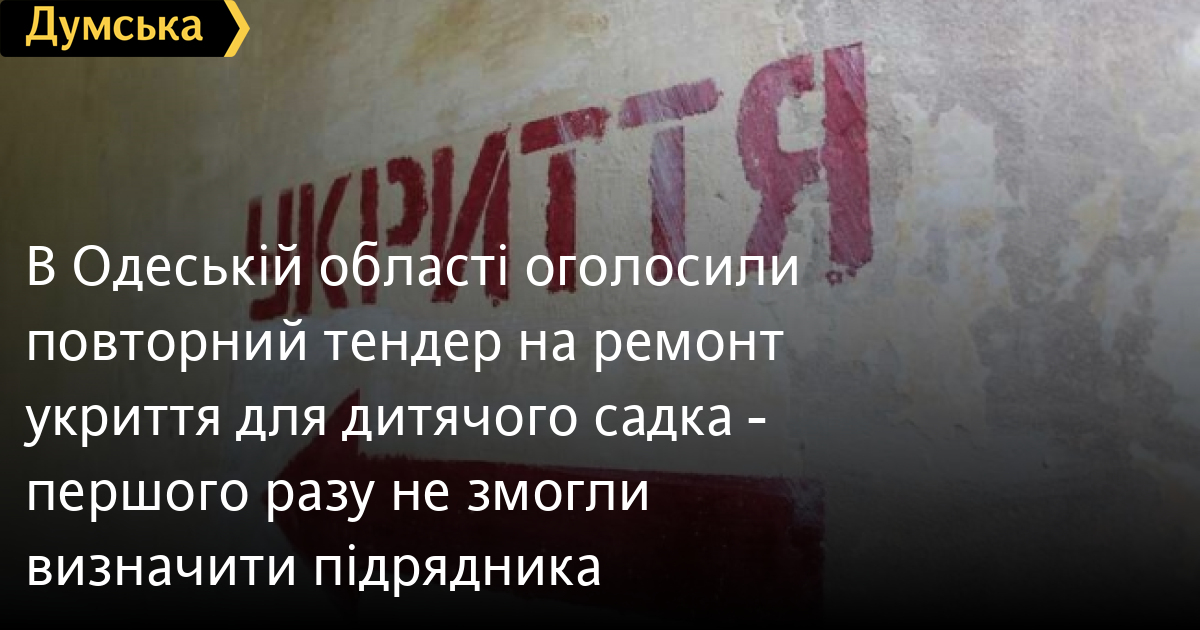 Повторний тендер на капітальний ремонт укриття для дитячого садка «Орлятко» в селі Набережне оголосила Усатівська сільрада.