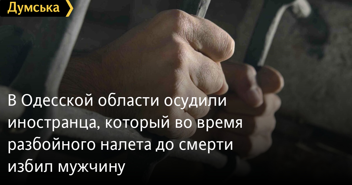 В Одесской области осудили иностранца, который во время разбойного налета до смерти избил мужчинуРаздельнянский районный суд в Одесской области приговорил к 13 годам тюрьмы с конфискацией имущества 57-летнего гражданина Молдовы, который в прошлом июне совершил разбойный налет на жителя одного из сел района. В результате нападения пострадавший скончался. В прокуратуре сообщили, что подсудимый вместе с сообщником, находясь в состоянии алкогольного опьянения, сильно избили мужчину у ворот его частного дома, после чего проникли внутрь жилья и забрали ценные вещи. После налета разбойники загрузили жертву в салон его же автомобиля и вывезли в поле, где оставили умирать. Фигуранта судили по ч.4 ст.187 (разбой, похищение человека, угон автомобиля, умышленные тяжкие телесные повреждения). Дело его сообщника суд рассматривает отдельно. СМЕРТЬ РОССИЙСКИМ ОККУПАНТАМ! Заметили ошибку? Выделяйте слова с ошибкой и нажимайте control-enter |