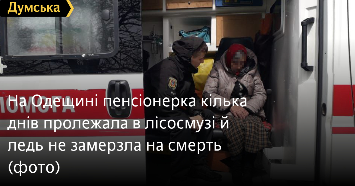 На Одещині пенсіонерка кілька днів пролежала в лісосмузі й ледь не замерзла на смертьПоліцейські врятували 74-річну жінку, яка кілька днів провела в лісосмузі на території Старокозацької громади та ледь не загинула від обмороження і зневоднення. У ГУНП повідомили, що постраждала 13 квітня під час прогулянки впала й отримала травму, через яку не змогла вибратися з посадки. Родичі невдовзі почали розшукувати її, не досягли успіхів і звернулися по допомогу до поліції. Пенсіонерку госпіталізували. Вони констатували, що якби жінка провела на холоді ще деякий час, то найімовірніше б померла. Помітили помилку? Виділяйте слова з помилкою та натискайте control-enter Новини по цій темі: 29 липня 2025: В Усатово Одеської області сталася перестрілка: поліція працює на місці (відео, оновлено) 28 липня 2025: П'яний на "Ягуарі" або гіпертонік? Звільнений топ-посадовець одеської поліції хоче повернутися на службу 19 червня 2025: Дівчинку, яку шукали сотні одеситів, знайшли вбитою: поліція працює з чоловіком, ймовірно причетним до загибелі 27 травня 2025: Увели гектар в університету: на Одещині засудили земельних аферистів, але без посадки і Хвоста |
