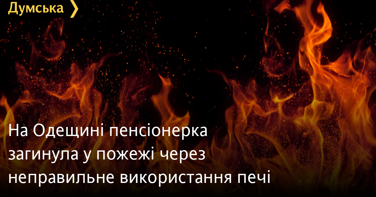 На Одещині пенсіонерка загинула у пожежі через неправильне використання печі72-річна мешканка Ізмаїла загинула під час пожежі, яка спалахнула ввечері 9 вересня у приватному будинку на вулиці Героїв Азовсталі. У Держслужбі з надзвичайних ситуацій повідомили, вогонь поширився на площі 20 кв м, його вдалося загасити приблизно за десять хвилин. Ймовірною причиною пожежі стало порушення правил пожежної безпеки під час експлуатації пічного опалення. На місці інциденту працювали семеро рятувальників та дві спецмашини. Помітили помилку? Виділяйте слова з помилкою та натискайте control-enter Новини по цій темі: 9 жовтня 2025: Нічний удар по Одеській області: постраждали п'ятеро людей, понад 30 тисяч абонентів залишилися без світла 19 серпня 2025: У будівлі коледжу в центрі Одеси виявили труп невідомого 10 червня 2025: Масштабна пожежа у центрі Одеси: ймовірні винуватці спустилися по дереву з третього поверху та намагалися втекти (фото, відео, оновлено) 10 червня 2025: Одесу атакують дрони: дісталося пологовому та житловим будинкам і станції швидкої допомоги (оновлюється, фото) |