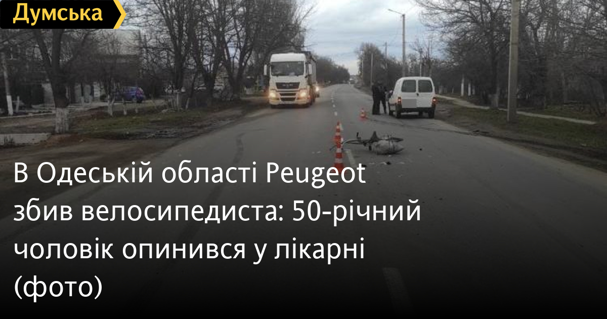 В Одеській області Peugeot збив велосипедиста: 50-річний чоловік опинився у лікарні50-річний чоловік постраждав в результаті ДТП, яка сталася 22 лютого на автодорозі сполученням Одеса – Білгород-Дністровський – Монаші. Як повідомили у пресслужбі поліції Одеської області, близько 16-ї години у селищі Великодолинське 50-річний чоловік їхав на велосипеді по крайній правій смузі дороги у бік Білгорода-Дністровського і різко виїхав на зустрічну смугу, де йому на зустріч рухався автомобіль Peugeot. В результаті зіткнення велосипедист отримав травми різного ступеня тяжкості і був ушпиталений. 31-річного водія легковика і велосипедиста перевірять на стан сп’яніння. Вирішується питання про внесення відомостей до ЄРДР за ч. 1 ст. 286 (порушення правил безпеки дорожнього руху або експлуатації транспорту особою, яка керує транспортним засобом, що спричинило потерпілому середньої тяжкості тілесне ушкодження) Кримінального кодексу України. Помітили помилку? Виділяйте слова з помилкою та натискайте control-enter Новини по цій темі: 30 серпня 2025: Машина вилетіла в кювет: мер Рені потрапив в аварію, його мати загинула, а маленький син у лікарні (фото) 18 серпня 2025: Троє загинули, один у лікарні: на трасі Одеса-Рені водій Mercedes не пропустив фуру (фото) 28 липня 2025: П'яний на "Ягуарі" або гіпертонік? Звільнений топ-посадовець одеської поліції хоче повернутися на службу 2 квітня 2025: В Одесі водій BMW спровокував аварію, в якій постраждали п`ятеро людей, і втік (фото, відео) |