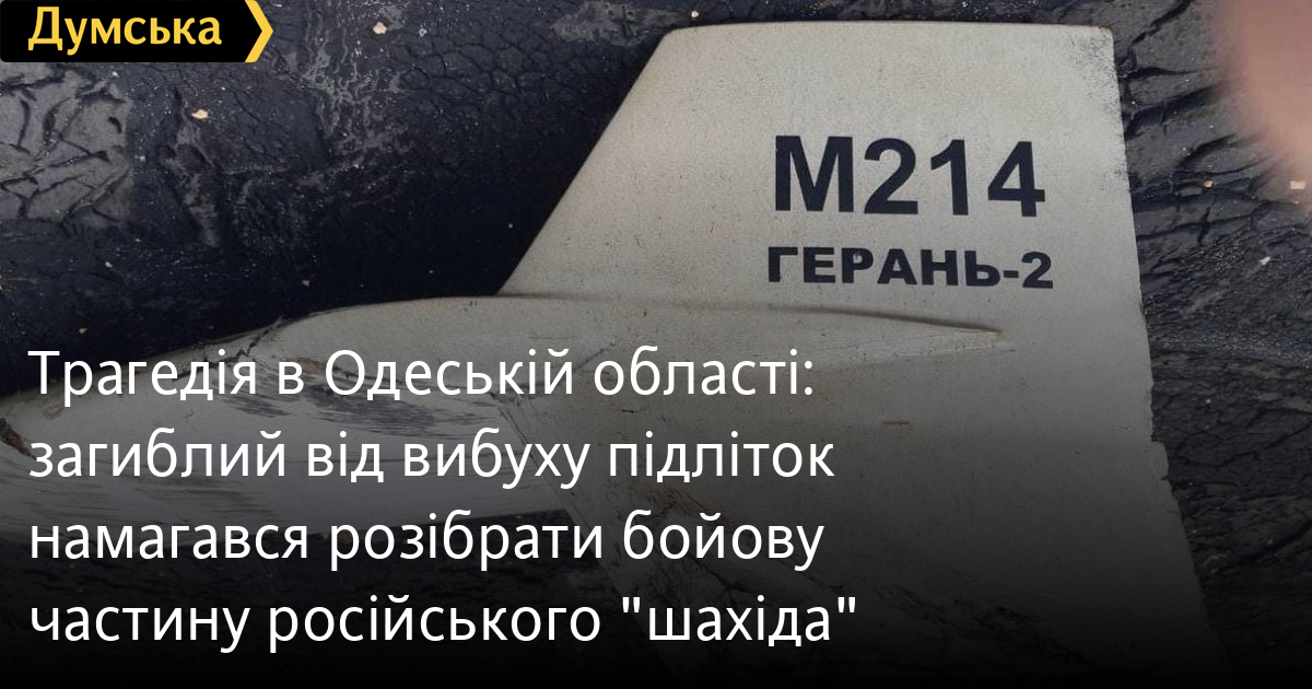 Як повідомили «Думській» у поліції, експерти, які оглянули місце події, встановили, що хлопець намагався за допомогою молотка і кутової шліфувальної машини розібрати бойову частину російського безпілотника типу «шахід» («Герань-2»).