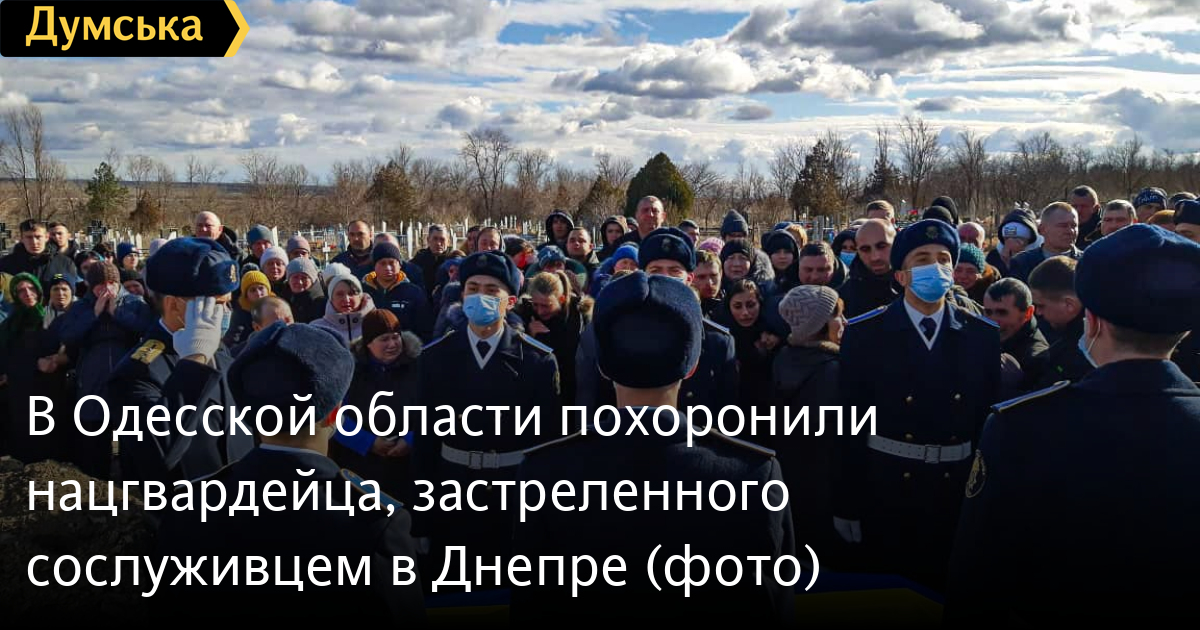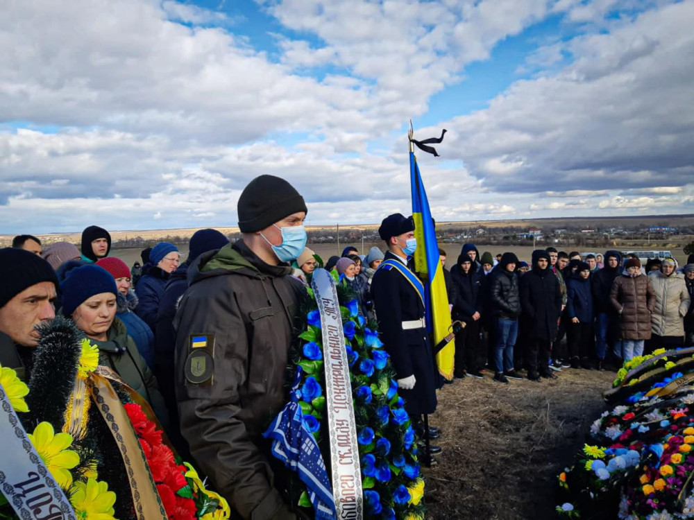 Прощание с военнослужащим Национальной гвардии Украины Александром Драганом, погибшим во время стрельбы на заводе «Южмаш», прошло сегодня, 31 января, в поселке Березино Одесской области.