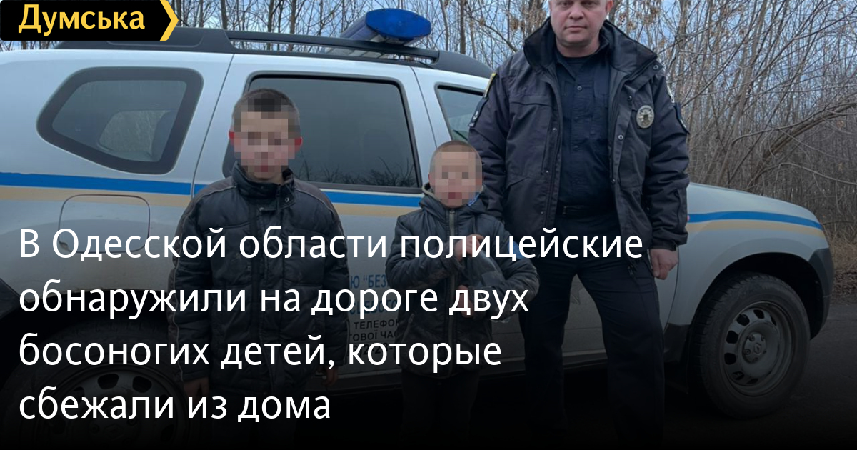 В Одесской области полицейские обнаружили на дороге двух босоногих детей, которые сбежали из домаДвое мальчиков 6 и 10 лет сбежали из дома в Винницкой области и около 10 километров прошли босиком по дороге в сторону Балты. В областной полиции сообщили, что подольские правоохранители обнаружили детей – при приближении служебной машины мальчики пытались спрятаться в кустах. Мальчики, которых зовут Ваня и Саша, рассказали полицейским, что бояться возвращаться домой, потому что их обижает отчим. Они надеялись дойти до Балты, где живет их бабушка. Полицейские забрали детей в участок, отогрели их, дали теплую одежду и обувь. Информацию об инциденте передали винницким коллегам, которые должны разобраться в семейной ситуации. Пока что дети поживут с бабушкой. СМЕРТЬ РОССИЙСКИМ ОККУПАНТАМ! Заметили ошибку? Выделяйте слова с ошибкой и нажимайте control-enter |