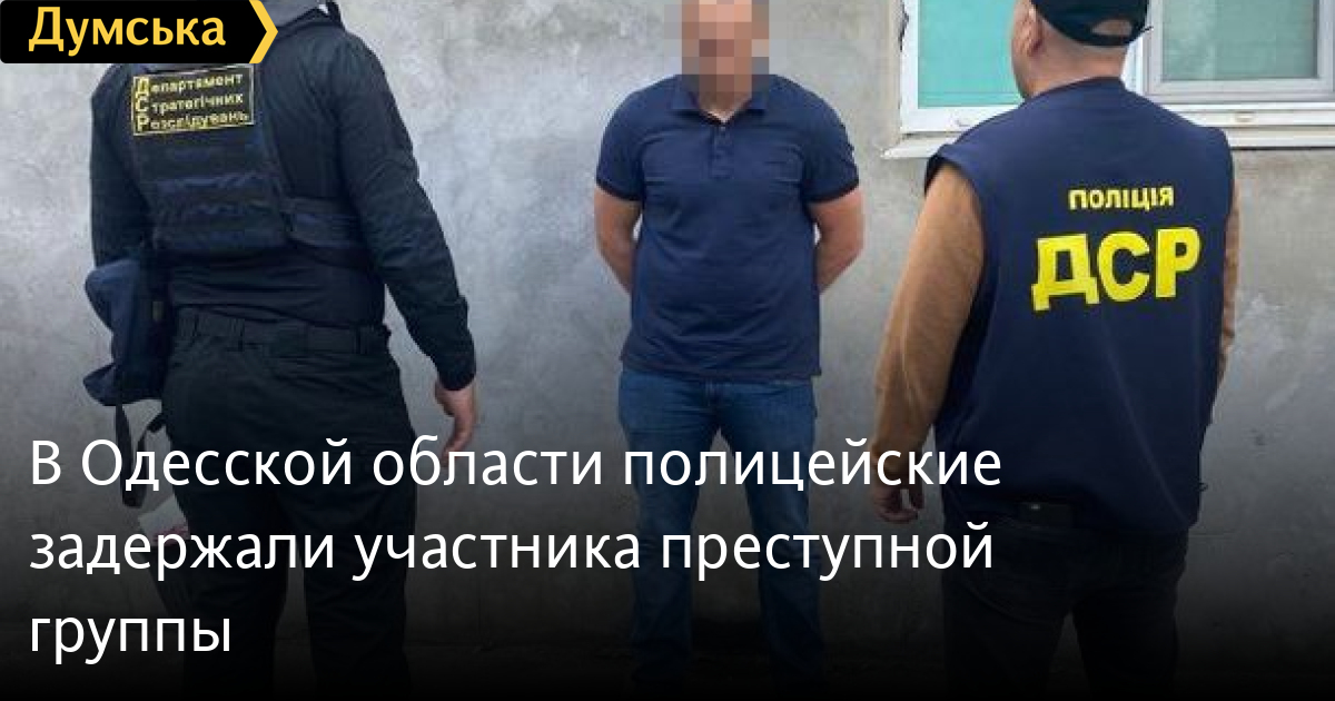 Участника преступной группировки, которая специализировалась на имущественных преступлениях — разбоях, грабежах и кражах — задержали в Одесской области сотрудники регионального управления стратегических расследований Нацполиции. Как сообщили в пресс-службе ГУНП, 34-летнего мужчину, который находился в розыске, поместили в изолятор временного содержания. В ближайшее время суд должен избрать ему меру пресечения. Деятельность преступной группировки была под контролем так называемого «смотрящего». СМЕРТЬ РОССИЙСКИМ ОККУПАНТАМ! Заметили ошибку? Выделяйте слова с ошибкой и нажимайте control-enter |