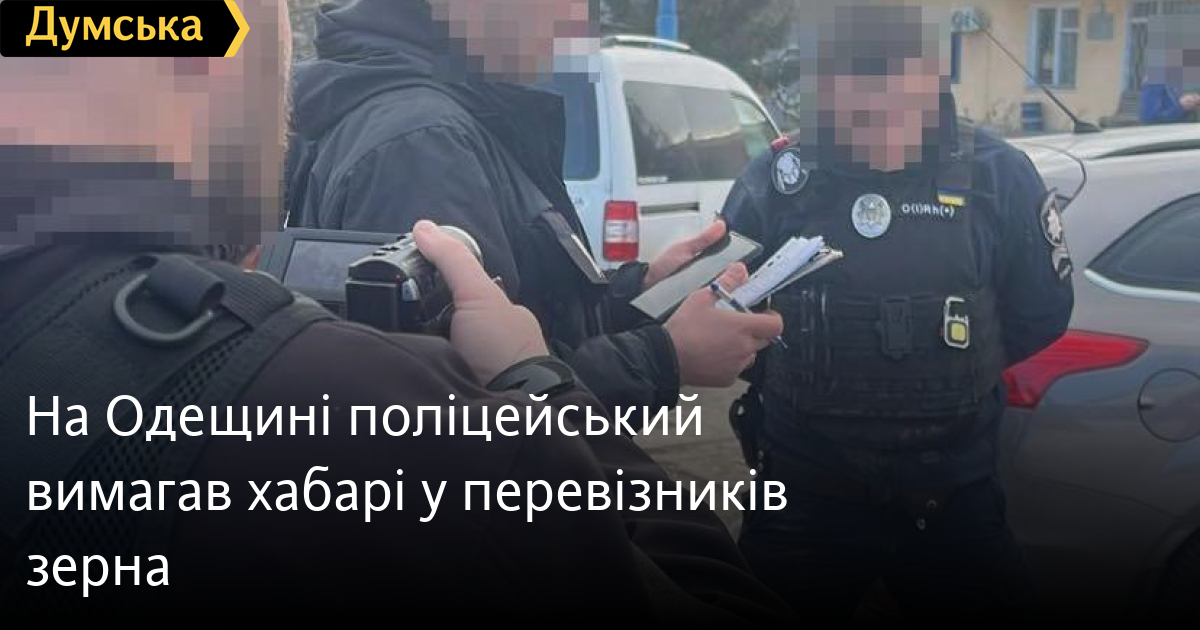 Правоохоронці затримали в Ізмаїлі співробітника патрульної поліції, який вимагав у перевізників зерна платити йому винагороду у розмірі 400 доларів. У прокуратурі повідомили, що в іншому випадку хабарник погрожував їм безпричинними зупинками вантажівок та складанням адмінпротоколів про нібито скоєні порушення правил дорожнього руху. Патрульного затримали відразу після отримання чергового хабара. За рішенням суду його ув'язнили у СІЗО. Йому повідомили про підозру за фактом отримання неправомірної вигоди посадовцем (ст. 368 КК України). Помітили помилку? Виділяйте слова з помилкою та натискайте control-enter Новини по цій темі: 12 серпня 2025: Як у кіно: в Одесі затримали драгдилера з партією психотропів на 20 мільйонів (фото) 9 серпня 2025: Обіцяла «закрити очі» на порушення: працівницю Одеської митниці спіймали на хабарі у чверть мільйона гривень 4 серпня 2025: Експертизу не зробили, камери не подивилися: одеські волонтери скаржаться на саботаж поліції у розслідуванні вбивства собаки 29 липня 2025: В Усатово Одеської області сталася перестрілка: поліція працює на місці (відео, оновлено) |