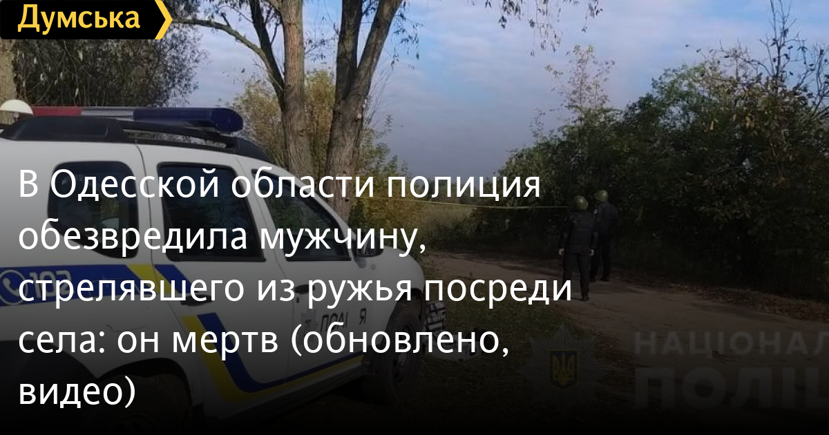 В Одесской области полиция обезвредила мужчину, стрелявшего из ружья посреди села: он мертв (обновлено, видео)Полицейские обезвредили мужчину, который устроил стрельбу из охотничьего ружья посреди села Пужайково Подольского района. Как сообщает пресс-служба ГУНП, стрелок мертв. На месте происшествия работают взрывотехники полиции и следственно-оперативная группа местного подразделения полиции. Также туда выехало руководство ГУНП. Напомним, стрельбу устроил местный житель. Во время задержания злоумышленник несколько раз выстрелил в сторону силовиков и повредил полицейское авто. Оперативники открыли огонь в ответ. Тем временем стрелок зашел в чужой дом и, угрожая хозяевам, выгнал их на улицу. Затем, уже с обрезом и гранатой, пошел к дому, где проживает женщина с детьми. ОБНОВЛЕНО В 15:00. По данным «Думской», злоумышленника застрелил участковый инспектор полиции. СМЕРТЬ РОСІЙСЬКИМ ОКУПАНТАМ! Помітили помилку? Виділяйте слова з помилкою та натискайте control-enter |