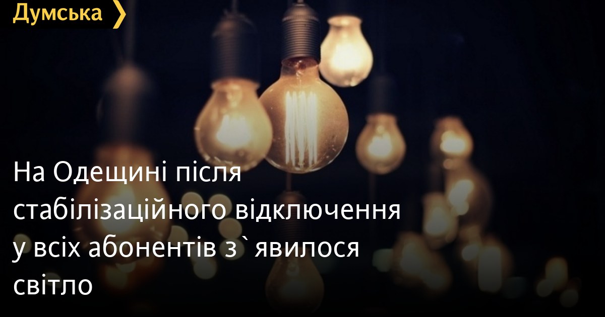 На Одещині після «стабілізаційного відключення» у всіх абонентів з`явилося світлоДТЕК «Одеські електромережі» о 21:30 завершив заплановані на 31 жовтня «стабілізаційні відключення» електрики в Одеській області. У компанії заявили, що світло з'явилося вже у всіх мешканців регіону. Більше сьогодні відключень не буде. У ДТЕК закликають мешканців Одеси та області продовжувати економити електроенергію під час пікових навантажень на мережу – з 6 до 11 ранку та з 17 до 23 години. Оскільки ситуація в енергомережі залишається складною, найближчими днями очікуються нові відключення світла. СМЕРТЬ РОСІЙСЬКИМ ОКУПАНТАМ! Помітили помилку? Виділяйте слова з помилкою та натискайте control-enter |