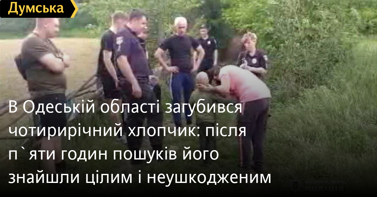 В Одеській області загубився чотирирічний хлопчик: після п`яти годин пошуків його знайшли цілим і неушкодженим👍 363 🙏 156 😢 36 ❤ 28 😱 13 😁 1 Чотирирічного хлопчика, який загубився в Подільському районі, розшукали правоохоронці та передали батькам. Як повідомили у пресслужбі поліції Одеської області, дитину шукали п'ять годин і знайшли на відстані кілометра від будинку. Рідні помітили зникнення хлопчика об 11 ранку і після години самостійних пошуків звернулися до поліції. Виявилося, що дитина майже не розмовляє, що сильно ускладнювало її пошуки. Правоохоронців турбував і той факт, що будинок сім'ї розташований поруч із лісом, а неподалік — плавні річки Ягорлик. Виявилося, що саме вони стали пасткою для хлопчика, він застряг у болоті, де його й знайшов дільничний офіцер і передав рідним. Помітили помилку? Виділяйте слова з помилкою та натискайте control-enter Новини по цій темі: 29 липня 2025: В Усатово Одеської області сталася перестрілка: поліція працює на місці (відео, оновлено) 28 липня 2025: П'яний на "Ягуарі" або гіпертонік? Звільнений топ-посадовець одеської поліції хоче повернутися на службу 19 червня 2025: Дівчинку, яку шукали сотні одеситів, знайшли вбитою: поліція працює з чоловіком, ймовірно причетним до загибелі 27 травня 2025: Увели гектар в університету: на Одещині засудили земельних аферистів, але без посадки і Хвоста |
