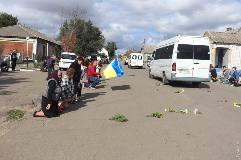 Жалобна церемонія пройшла через села Новоселівка, Делень та завершилась у селі Нова Іванівка біля будинку, в якому живе мати героя – переселенка з Миколаєва.
