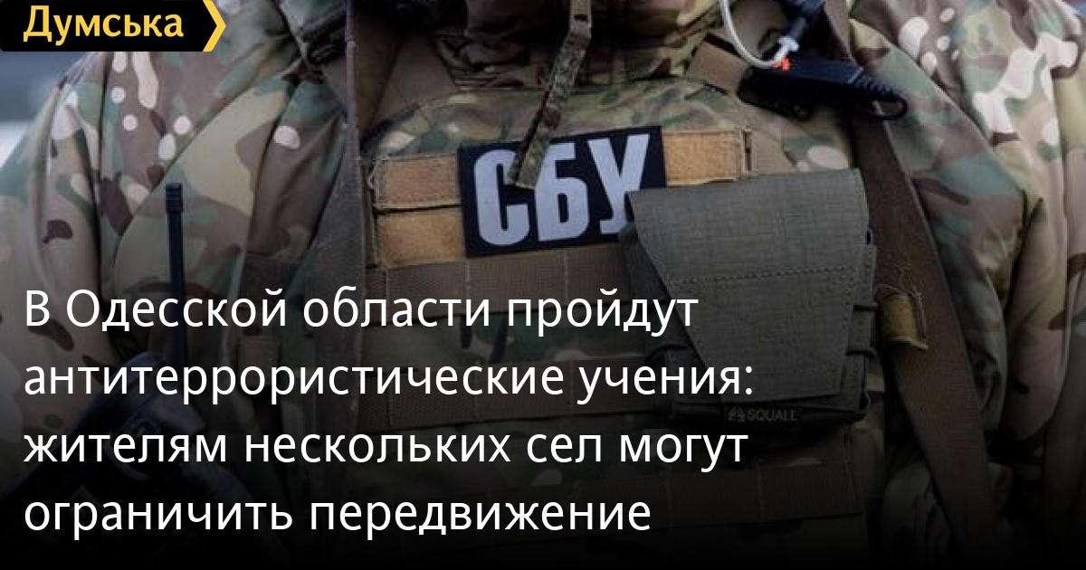 В Одесской области пройдут антитеррористические учения: жителям нескольких сел могут ограничить передвижениеАнтитеррористический центр Службы безопасности Украины с 3 по 7 августа проведет учения в Белгород-Днестровском районе Одесской области. Как сообщили в пресс-службе СБУ, тренировки в условиях максимально приближенных к реальным будут проходить в районе сел Сергеевка, Шабо, Прибрежное и Беленькое. Жителей сел просят сохранять спокойствие – на улицах могут появится вооруженные бойцы и бронетехника. В рамках учений могут временно ограничить или запретить передвижение людей и транспортных средств, проверять документы и проводить досмотр автомобилей. Кроме оперативников СБУ, в учениях примут участие бойцы Вооруженных сил Украины, Нацгвардии, полиции и ГСЧС. СМЕРТЬ РОССИЙСКИМ ОККУПАНТАМ! Заметили ошибку? Выделяйте слова с ошибкой и нажимайте control-enter Новости по этой теме: 28 сентября 2021: Присвоил 12 миллионов и сбежал в ОРДЛО: СБУ задержала бывшего топ-чиновника оборонного сектора 25 сентября 2021: Обвиняют в подделке документов: СБУ объявила подозрение теще Шария 24 сентября 2021: Россия заканчивает подгонять образовательную отрасль "ДНР" под свои стандарты – СБУ 24 сентября 2021: Взрывчатка, тротиловые шашки и гранаты: на Львовщине у "общественника" обнаружили опасный тайник |