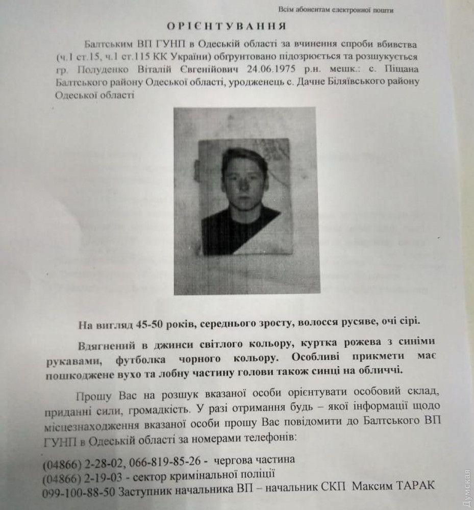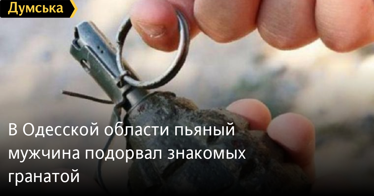 Полиция разыскивает 45-летнего жителя села Песчаная Балтского района Одесской области, который сегодня во время пьянки с тремя знакомыми, приехавшими из Винницкой области, бросил в них боевую гранату. Пострадавшие получили многочисленные ранения, подрывник же сбежал.
