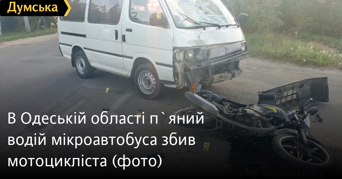 В Одеській області п`яний водій мікроавтобуса збив мотоциклістаВодій мотоцикла постраждав унаслідок ДТП, яка сталася 6 вересня в Подільську. Як повідомила пресслужба поліції Одеської області, 61-річний водій мікроавтобуса, виконуючи поворот ліворуч із головної дороги на другорядну, не надав перевагу в русі 17-річному мотоциклістові, який рухався в зустрічному напрямку. У результаті сталося зіткнення. Водій двоколісного мотоцикла отримав травми і був госпіталізований із закритими осколковими переломами стегна та політравмою. Водій мікроавтобуса не постраждав, але перевірка показала, що він був п'яний. Чоловіка затримали, а транспортні засоби забрали на штрафмайданчик. 61-річному водієві повідомили про підозру за ч. 2 ст. 286-1 КК України. Йому загрожує позбавлення волі на строк від трьох до восьми років з позбавленням права керувати транспортними засобами на строк від п'яти до восьми років. Помітили помилку? Виділяйте слова з помилкою та натискайте control-enter Новини по цій темі: 30 серпня 2025: Машина вилетіла в кювет: мер Рені потрапив в аварію, його мати загинула, а маленький син у лікарні (фото) 18 серпня 2025: Троє загинули, один у лікарні: на трасі Одеса-Рені водій Mercedes не пропустив фуру (фото) 28 липня 2025: П'яний на "Ягуарі" або гіпертонік? Звільнений топ-посадовець одеської поліції хоче повернутися на службу 2 квітня 2025: В Одесі водій BMW спровокував аварію, в якій постраждали п`ятеро людей, і втік (фото, відео) |